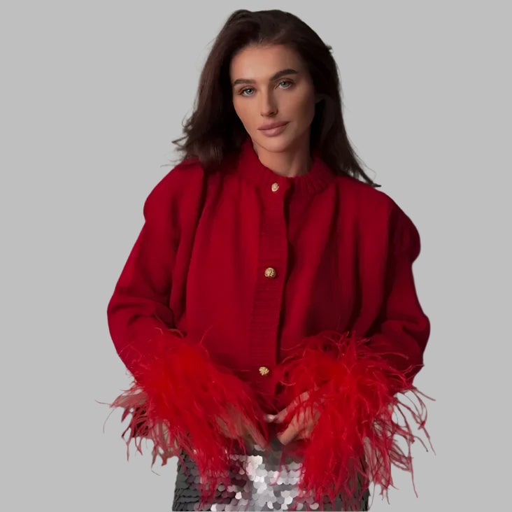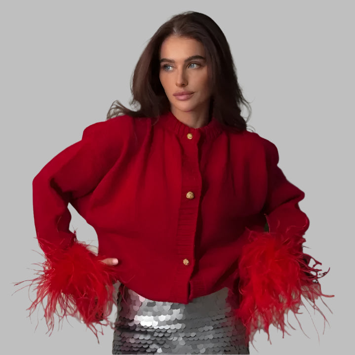 Raya- Samtjacke mit Federmanschetten
